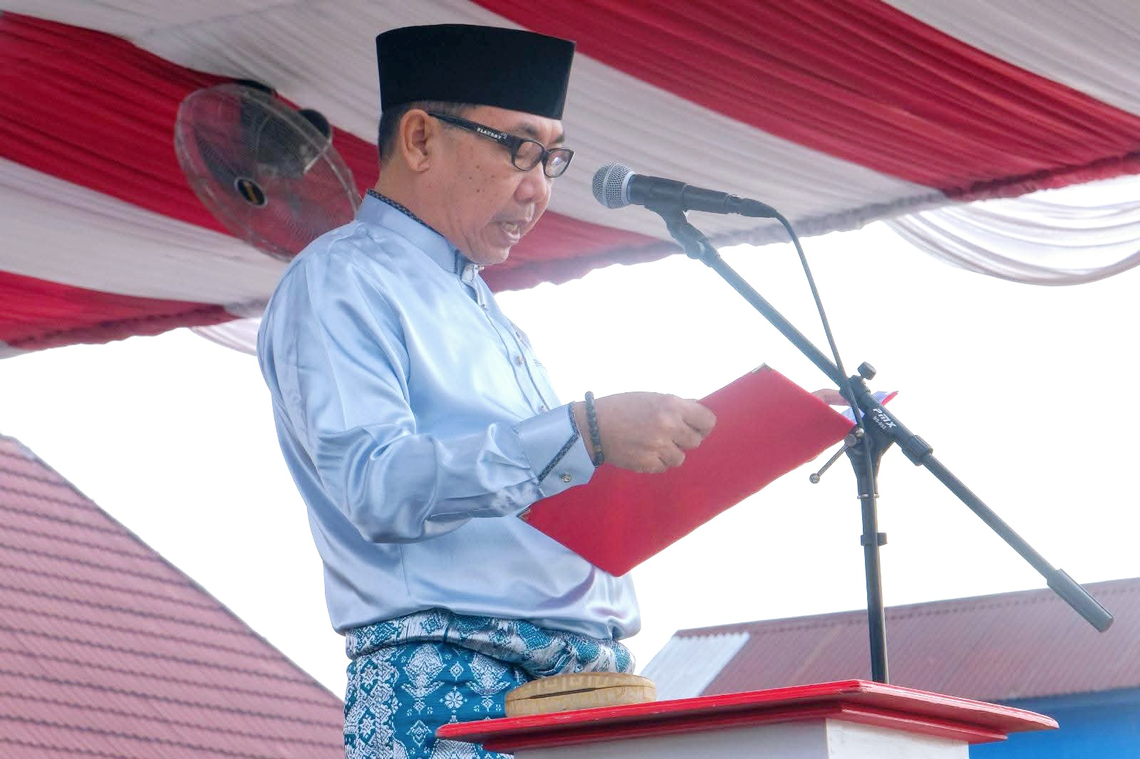 Bupati Tanjab Barat, Drs. H. Anwar Sadat, M.Ag., bertindak sebagai pembina upacara, didampingi Wakil Bupati Dr. H. Katamso SA, SE., ME.. Sejumlah pejabat, mulai dari Kepala Pengadilan Agama, Sekretaris Daerah, Ketua TP PKK, Ketua GOW, Ketua DWP, pimpinan instansi vertikal, BUMN, BUMD, hingga tokoh masyarakat, hadir memberi penghormatan pada momentum bersejarah tersebut.